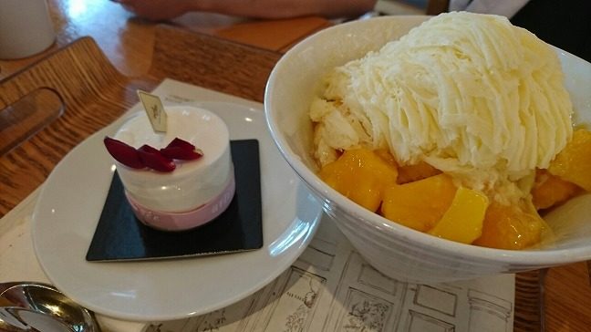 カフェのイチオシマンゴーかき氷。メニューの写真とかなり違いがあり、少し驚きましたが、味は美味しいです。あと小豆かき氷もありますが、昨晩食べたので、今日はこれで