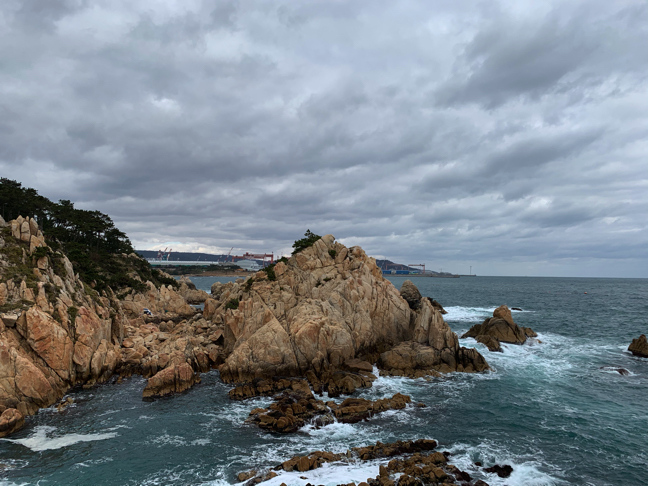 韓国の蔚山ウルサン)の絶景スポット「大王岩公園テワンアムゴンウォン)」へ行って初めて行ってきました。蔚山は朝鮮半島東南端に位置し、日本海を望む港町。韓国観光100選の一つにも選ばれていて、珍しい岩壁が見もの