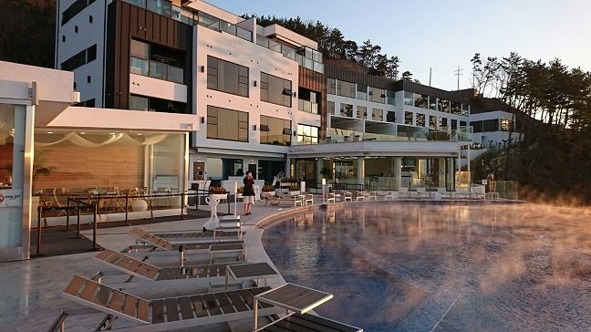麗水(ヨス)で一番素敵なリゾートホテルへ行こうということで泊まったのが「ル グランド ブルー (LE GRAND BLEU)」人気エリアの突山邑(トルサンウプ)にあります。車で市内へのアクセスも良い場所です。街の喧騒から離れて、ゆっくり過ごしたい時は、ここが最高です