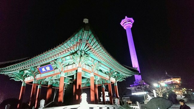 釜山タワーがドーンと見えて、真ん丸お月様が美しい~。季節がよくなったら是非ここで夜景を見ながら生チョコラテをいただきたい。