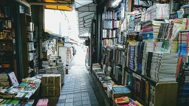 実はこの道は、歴史があり第二次世界大戦の終戦直後にさかのぼります。戦後にバタバタと日本人が引き揚げる際に残していった本を韓国の人々が市場の露店で売り始めたのが始まりです。時を経て、今では約50軒の本屋が集まり古本、海外の本、新書、マンガ等など多様な本が所狭しと積んであります