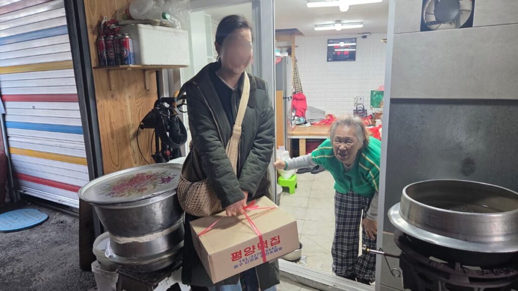 店主のイ・ボクスンさんは現在90歳。1950年の朝鮮戦争で北から逃れ、生きるために始めたのがこのお餅屋さんでした。今も現役で店頭に立つその姿は、ソウルの生きる伝説そのものです。 重労働に耐え、守り抜く伝統の形 お餅作りは、蒸した米をつき、餡をまぶし、成形するという非常に体力のいる仕事です。おばあちゃんの腰は、長年この重労働を支えてきた証として深く曲がっています。それでも「待っている人がいるから」と、朝早くからお餅に向き合う姿には、深い尊敬の念を抱かずにはいられません。