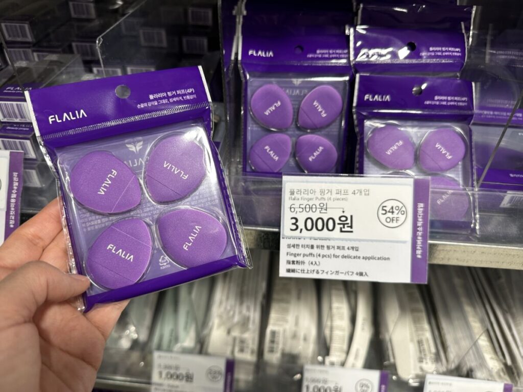また、FLALIAのフィンガーパフといったメイク小物も充実しています。日本のネットでの値段をチェックしておくのもいいですね。