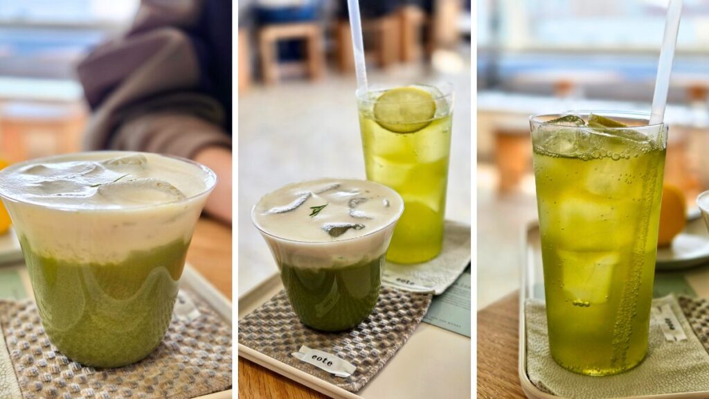 ここに来たら、まずは「キムチャラテ(海苔ラテ)」を試してみてください。海苔の香ばしい風味がコーヒーのコクを引き立てる不思議な感覚は、一度飲むと忘れられません。爽やかさを求めるなら「エゴマの葉エイド」が正解。エゴマ独特の清涼感が鼻を抜け、歩き疲れた体に染み渡ります。