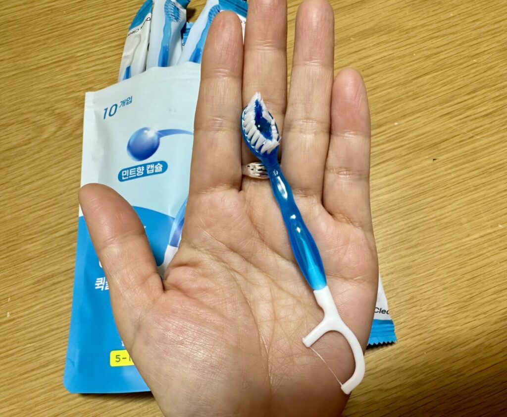 私は食後の歯磨きを欠かさないようにしていますが、外出先で歯ブラシセットを持ち歩くのは荷物になり、どうしても面倒で今まではフロスだけで済ませていました。同じように「荷物を最小限に!口内ケアは妥協したくない」と感じている方は多いはず。加えて、韓国旅行先でも歯ブラシはホテルに置いてないので持参しないといけません。